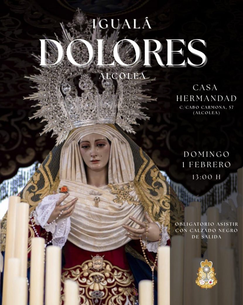 El próximo 1 de febrero tendrá lugar la igualá de costaleros y costaleras del paso de palio de María Santísima de los Dolores. Si quieres unirte a esta gran familia, […]
