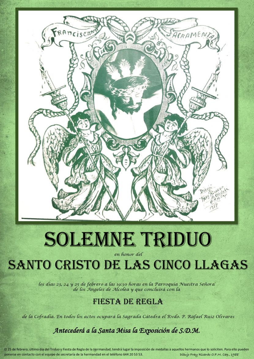 El cartel de cultos se ha diseñado con el objetivo de incluir el dibujo que nuestro querido e insigne hermano Fray Ricardo de Córdoba realizara en 1988.